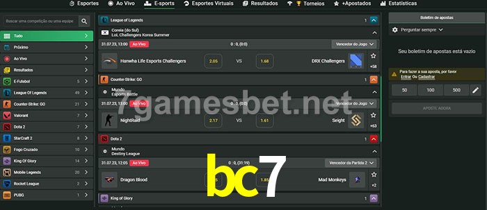 A aposta bc7 oferece aos jogadores a experiência mais conveniente de apostas em eSports!